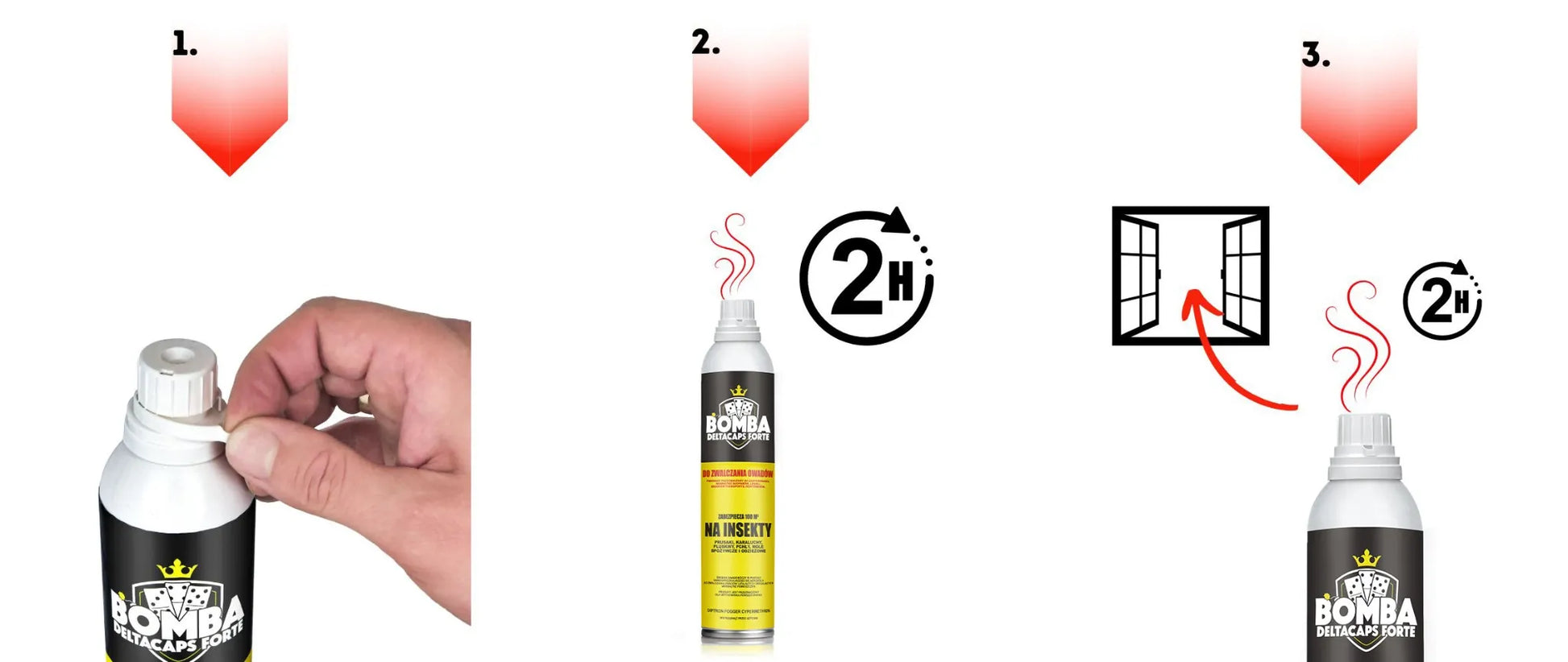 DELTACAPS FORTE ist ein gebrauchsfertiges, starkes Insektizid in Form einer Vernebelungsbombe – zur Bekämpfung von kriechenden Insekten in sanitären Bereichen, z. B. Bettwanzen, Motten, Flöhen, Teppichkäfern u. a. Besonders empfohlen zur Bekämpfung von Schaben und Küchenschaben, mit schneller Fraß- und Kontaktwirkung (nach 2 Stunden). Enthält Cypermethrin und Piperonylbutoxid. Eine Dose reicht für 100 m³ (ca. 40 m²) behandelte Fläche.